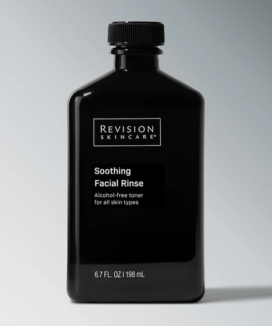 Soothing Facial Rinse is an alcohol-free, calming toner that hydrates, refreshes, and comforts the skin after cleansing. This gentle post-cleanse treatment uses a blend of plant and algae extracts to help calm visible redness, replenish moisture, and support the skin’s optimal pH—without leaving skin feeling dry or tight. With Arnica montana Extract, Grape Seed Extract, and Pro-Vitamin B5, it leaves skin soft, soothed, and refreshed.
